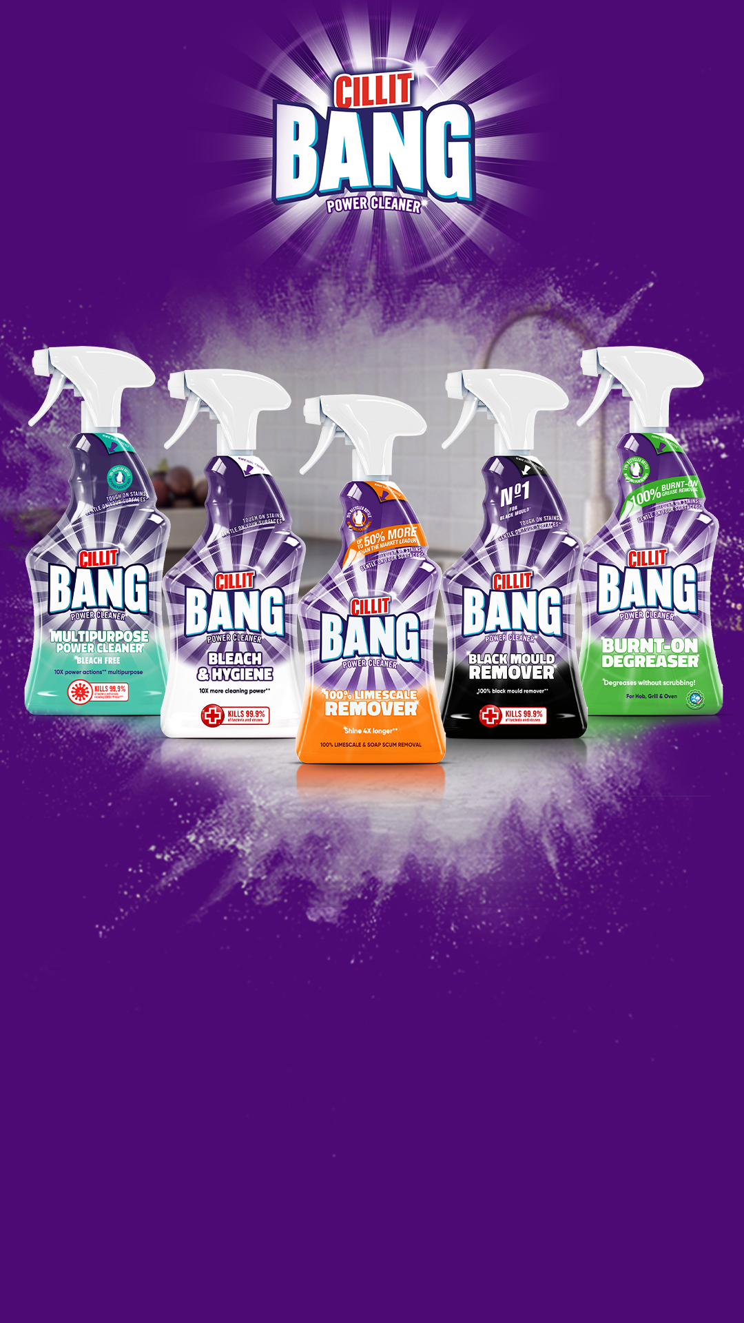 Cillit Bang is committed! Our triggers' formulas are tough on stains but gentle on your surfaces. And, our bottles are more and more sustainable, starting with our natural range, Burnt on Degreaser, and 100% Limescale Remover now made of 75% recycled plastic.